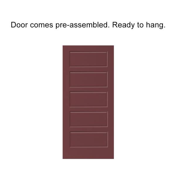 30 in. x 80 in. Maroon Stained Composite MDF 5 Panel Interior Sliding Barn Door with Hardware Kit