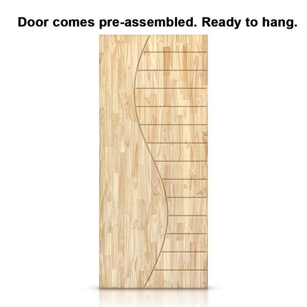 30 in. x 80 in. Natural Pine Wood Unfinished Interior Sliding Barn Door with Hardware Kit