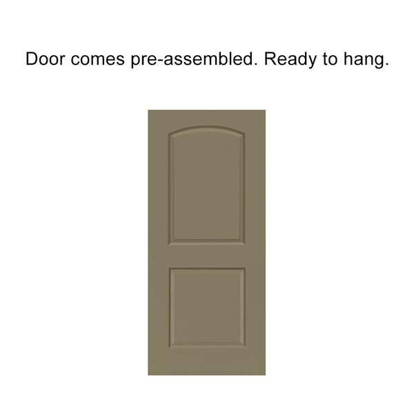 30 in. x 80 in. Olive Green Stained Composite MDF 2-Panel Round Top Interior Sliding Barn Door with Hardware Kit