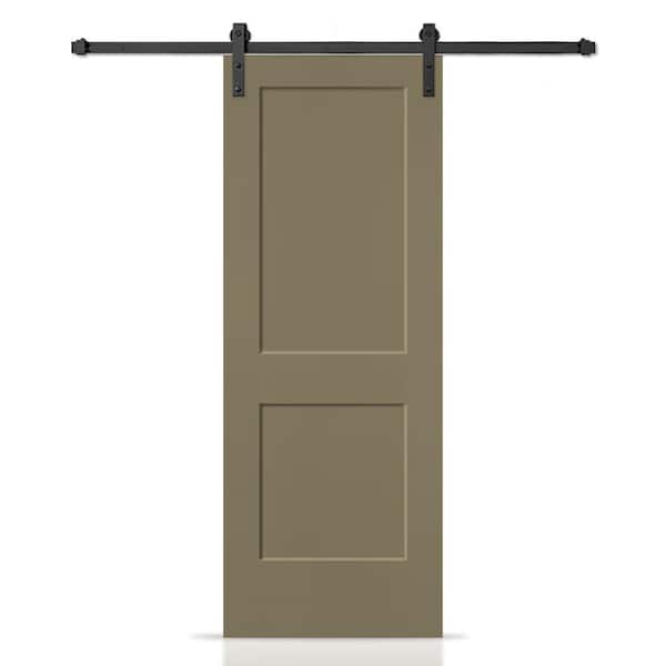 30 in. x 80 in. Oliver Green Painted MDF Solid Core 2-Panel Shaker Interior Sliding Barn Door with Hardware Kit