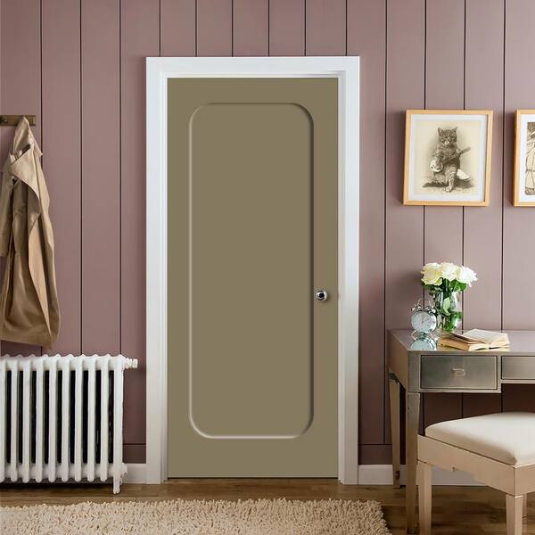 30 in. x 80 in. Right-Handed Curved 1 Panel Shaker Olive Green Painted Smooth Composite Single Prehung Interior Door