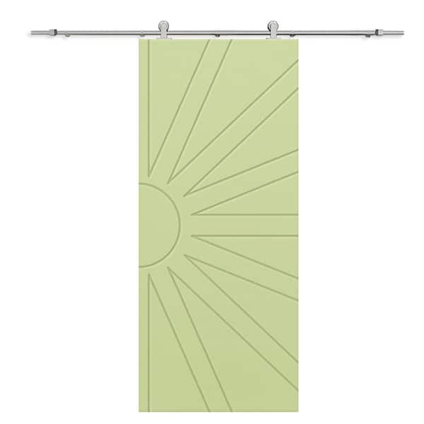 30 in. x 80 in. Sage Green Stained Composite MDF Paneled Interior Sliding Barn Door with Hardware Kit