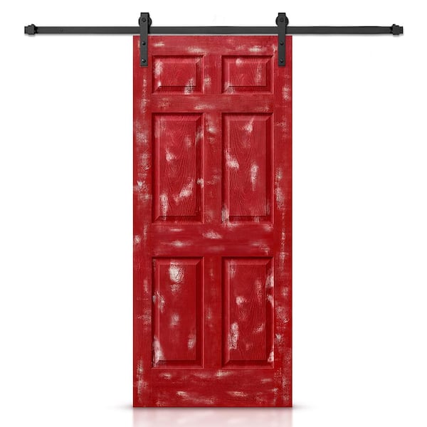30 in. x 80 in. Vintage Red Stain Composite MDF 6 Panel Interior Sliding Barn Door with Hardware Kit