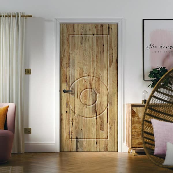 30 in. x 80 in. Weather Oak Stained Pine Wood Modern Interior Door Slab