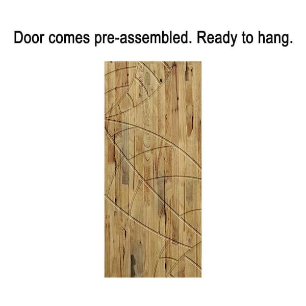30 in. x 80 in. Weather Oak Stained Pine Wood Modern Interior Sliding Barn Door with Hardware Kit