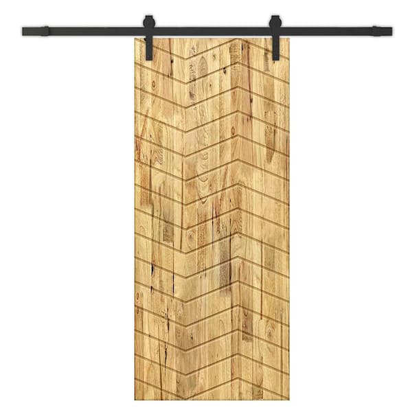 30 in. x 80 in. Weather Oak Stained Pine Wood Modern Interior Sliding Barn Door with Hardware Kit