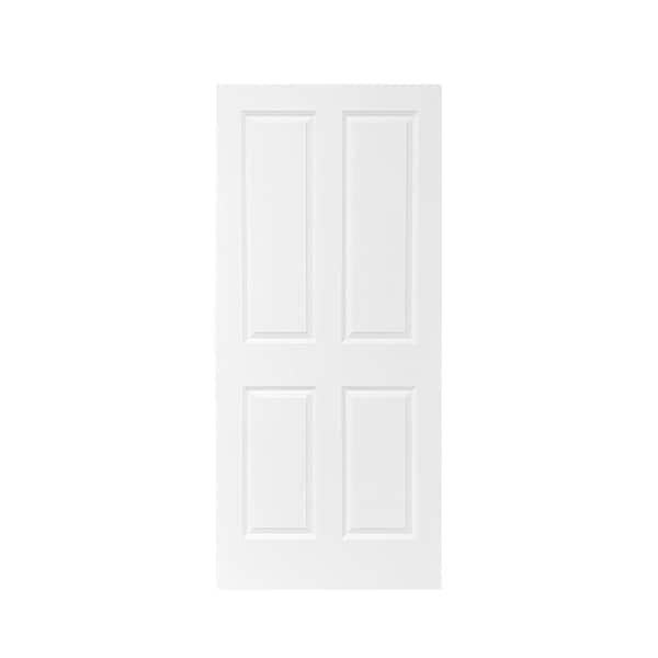 30 in. x 80 in. White Stained Composite MDF 4 Panel Interior Barn Door Slab