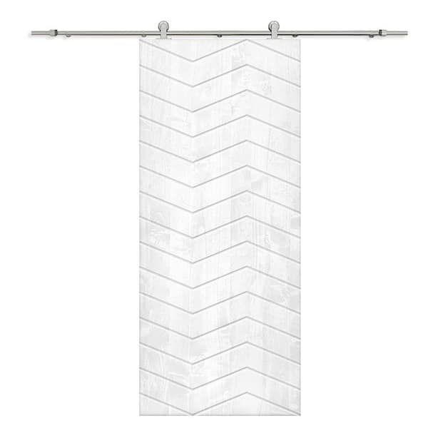 30 in. x 80 in. White Stained Pine Wood Modern Interior Sliding Barn Door with Hardware Kit