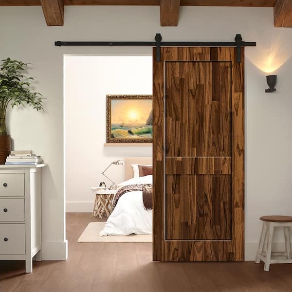 30 in. x 84 in. 2 Panel Shaker Hollow Core Walnut Stained Pine Wood Interior Sliding Barn Door with Hardware Kit