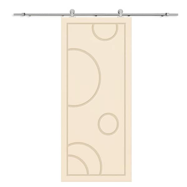 30 in. x 84 in. Beige Painted Composite MDF Paneled Interior Sliding Barn Door with Hardware Kit
