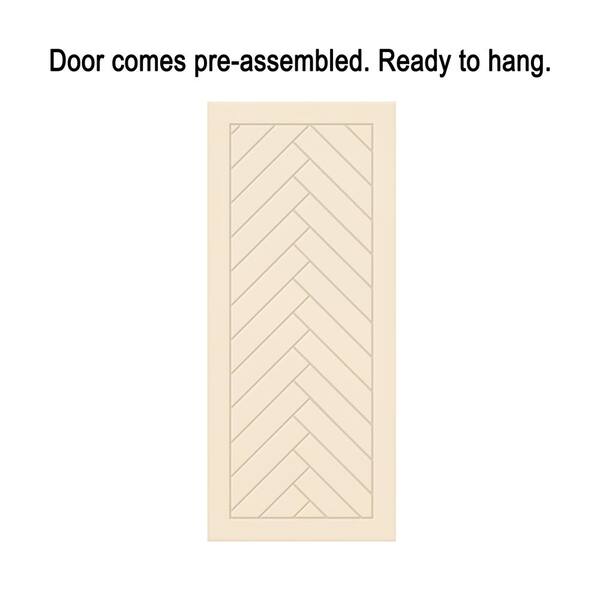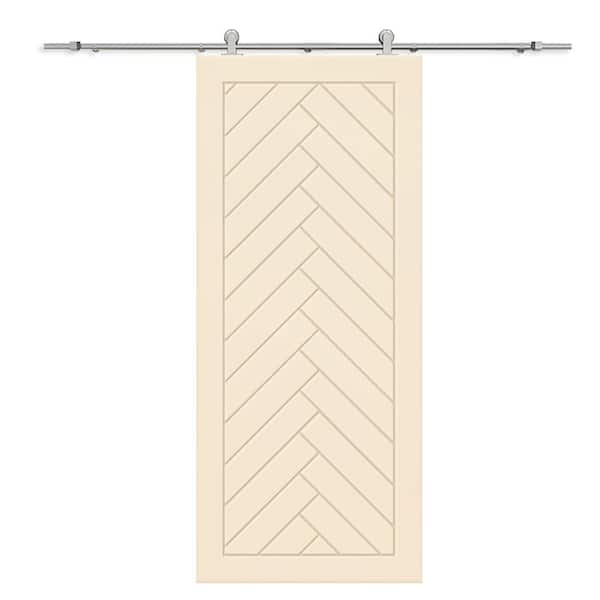 30 in. x 84 in. Beige Painted Composite MDF Paneled Interior Sliding Barn Door with Hardware Kit