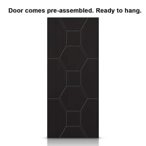 30 in. x 84 in. Black Painted Composite MDF Paneled Interior Sliding Barn Door with Hardware Kit