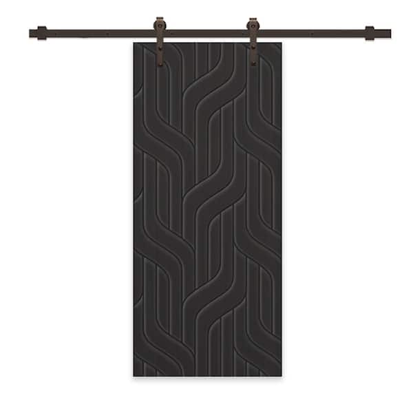 30 in. x 84 in. Black Painted Composite MDF Paneled Interior Sliding Barn Door with Hardware Kit