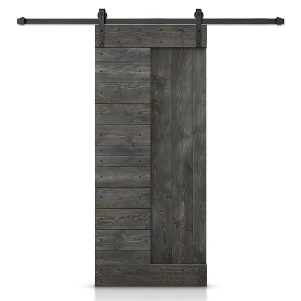 30 in. x 84 in. Carbon Gray Stained DIY Knotty Pine Wood Interior Sliding Barn Door with Hardware Kit