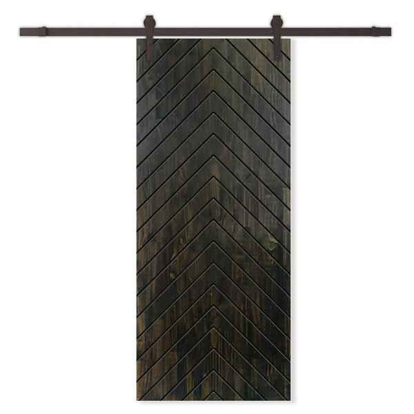 30 in. x 84 in. Charcoal Black Stained Pine Wood Modern Interior Sliding Barn Door with Hardware Kit