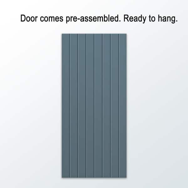 30 in. x 84 in. Dignity Blue Painted Composite MDF Paneled Interior Sliding Barn Door with Hardware Kit