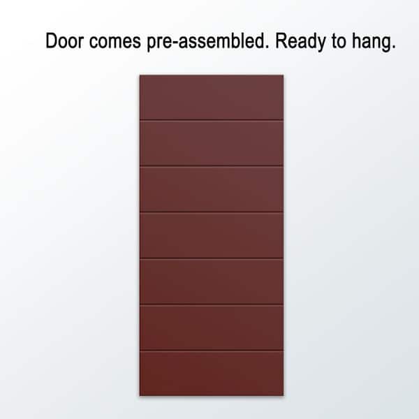 30 in. x 84 in. Maroon Painted Composite MDF Paneled Interior Sliding Barn Door with Hardware Kit