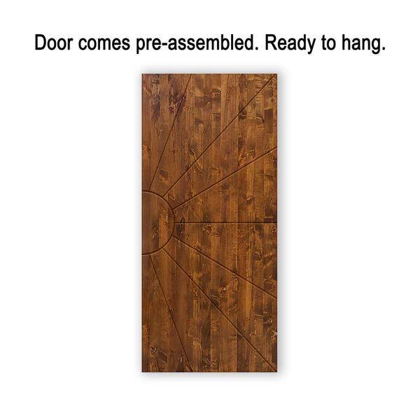 30 in. x 84 in. Walnut Stained Pine Wood Modern Interior Sliding Barn Door with Hardware Kit