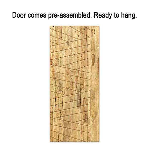 30 in. x 84 in. Weather Oak Stained Pine Wood Modern Interior Sliding Barn Door with Hardware Kit