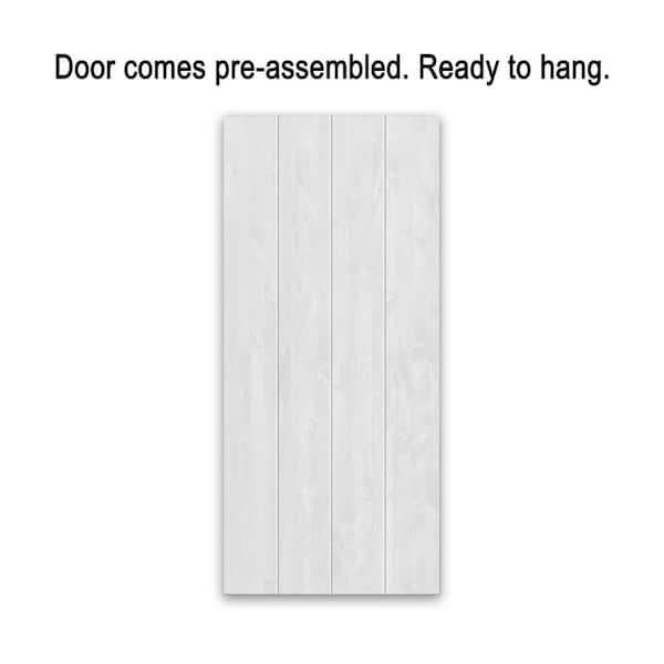 30 in. x 84 in. White Stained Pine Wood Modern Interior Sliding Barn Door with Hardware Kit