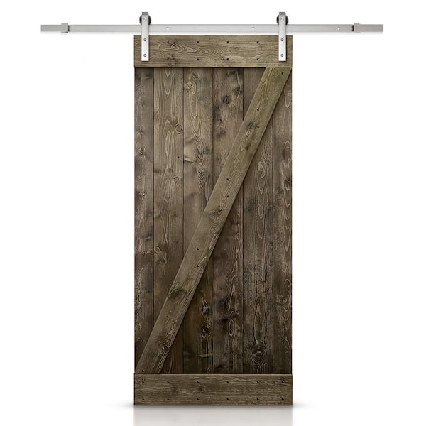 30 in. x 84 in. Z Bar Espresso Stained Solid DIY Knotty Pine Wood Interior Sliding Barn Door with Sliding Hardware Kit