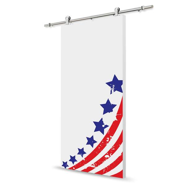 30 in. x 96 in. Artisan Print Series Star and Stripes MDF Modern Interior Sliding Barn Door with Hardware Kit