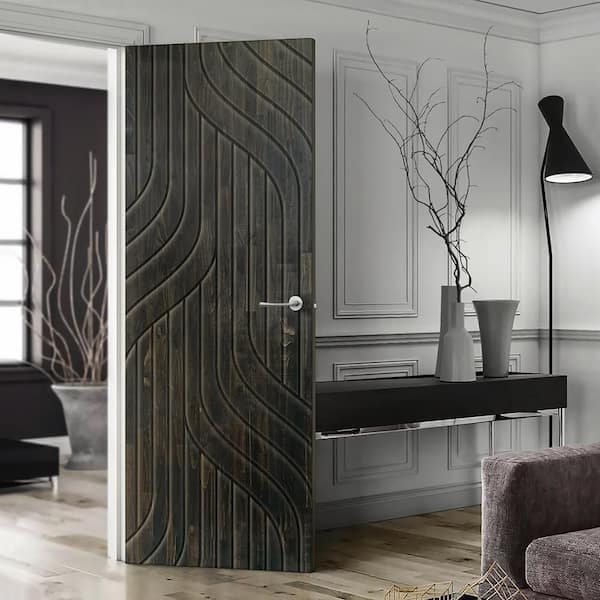 30 in. x 96 in. Hollow Core Charcoal Black Stained Pine Wood Interior Door Slab