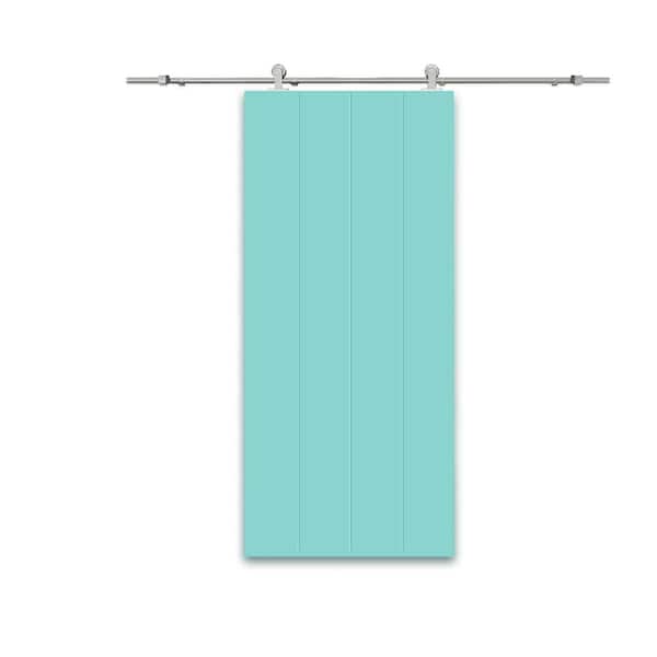 30 in. x 96 in. Mint Green Painted Composite MDF Paneled Interior Sliding Barn Door with Hardware Kit