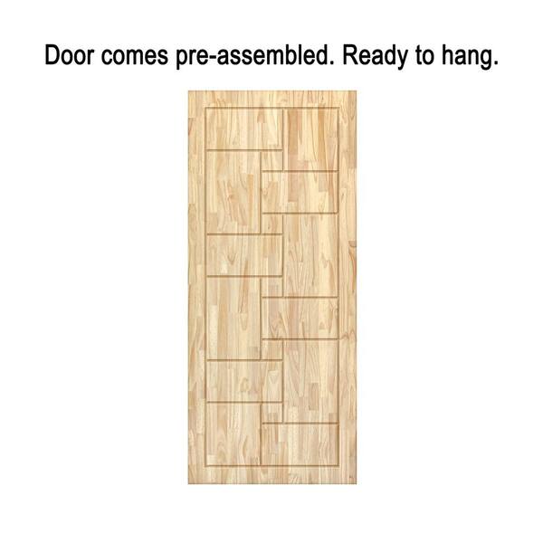 30 in. x 96 in. Natural Pine Wood Unfinished Interior Sliding Barn Door with Hardware Kit