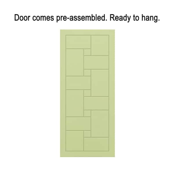 30 in. x 96 in. Sage Green Painted Composite MDF Paneled Interior Sliding Barn Door with Hardware Kit