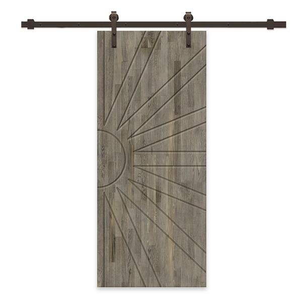 30 in. x 96 in. Weather Gray Stained Pine Wood Modern Interior Sliding Barn Door with Hardware Kit