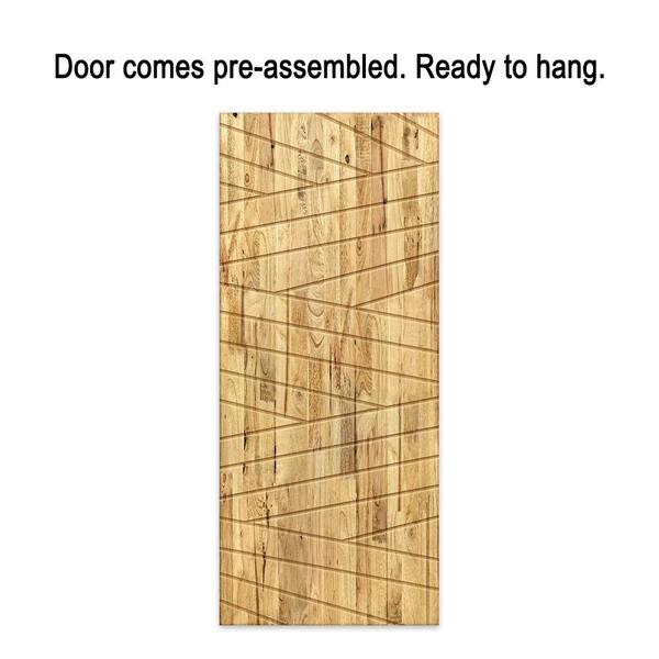 30 in. x 96 in. Weather Oak Stained Pine Wood Modern Interior Sliding Barn Door with Hardware Kit