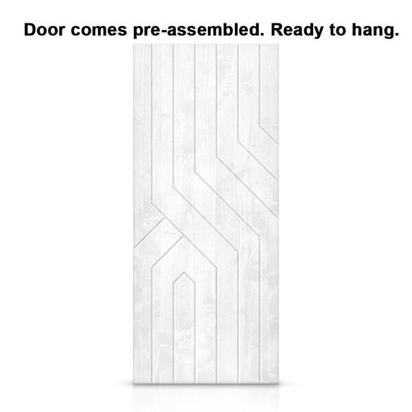 30 in. x 96 in. White Stained Pine Wood Modern Interior Sliding Barn Door with Hardware Kit