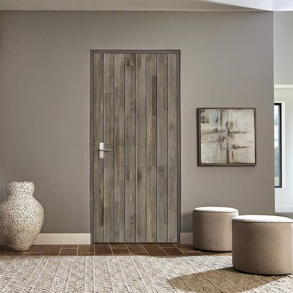 32 in. x 84 in. Hollow Core Weather Gray Stained Pine Wood Interior Door Slab