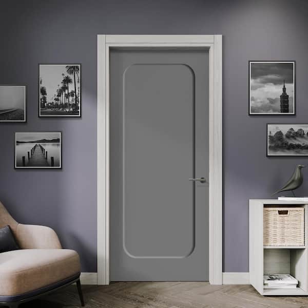 34 in. x 80 in. Left-Handed Curved 1 Panel Shaker Light Gray Painted Smooth Composite Single Prehung Interior Door
