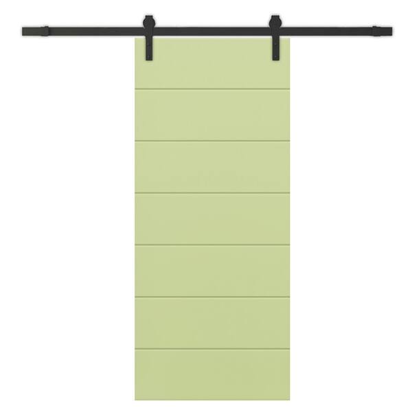 34 in. x 80 in. Sage Green Painted Composite MDF Paneled Interior Sliding Barn Door with Hardware Kit