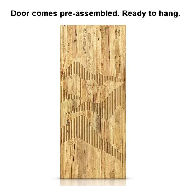 34 in. x 84 in. Weather Oak Stained Pine Wood Modern Interior Sliding Barn Door with Hardware Kit