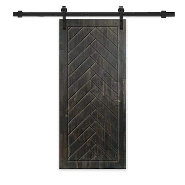 34 in. x 96 in. Charcoal Black Stained Pine Wood Modern Interior Sliding Barn Door with Hardware Kit