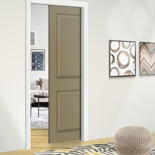 36 in. x 80 in. 2-Panel Olive Green Stained Composite MDF Hollow Core Interior Door Slab For Pocket Door
