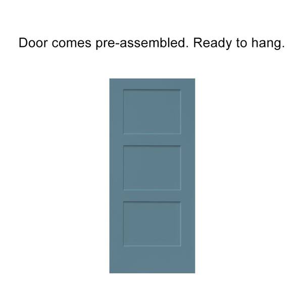 36 in. x 80 in. 3-Panel Dignity Blue Stained Composite MDF Equal Style Interior Sliding Barn Door with Hardware Kit