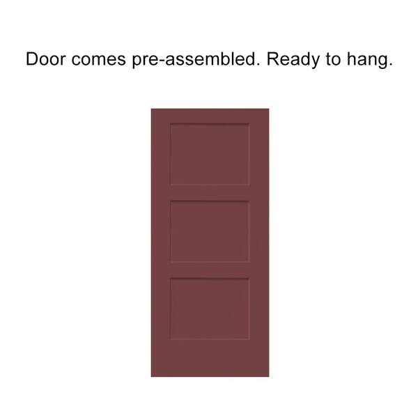 36 in. x 80 in. 3-Panel Maroon Stained Composite MDF Equal Style Interior Sliding Barn Door with Hardware Kit