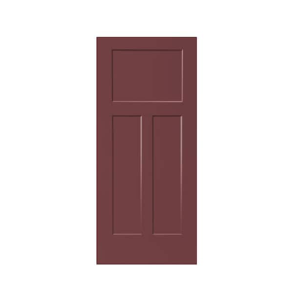 36 in. x 80 in. 3-Panel Maroon Stained Composite MDF Interior Barn Door Slab
