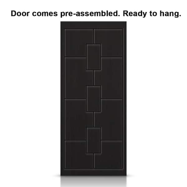 36 in. x 80 in. Black Painted Composite MDF Paneled Interior Sliding Barn Door with Hardware Kit