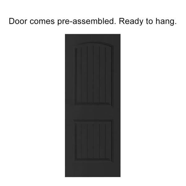 36 in. x 80 in. Camber Top in Black Stained Composite MDF Split Sliding Barn Door with Hardware Kit