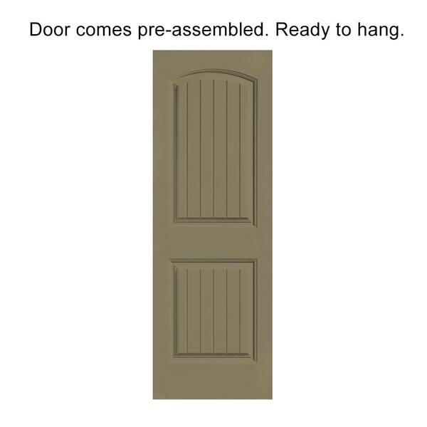 36 in. x 80 in. Camber Top in Olive Green Stained Composite MDF Split Sliding Barn Door with Hardware Kit