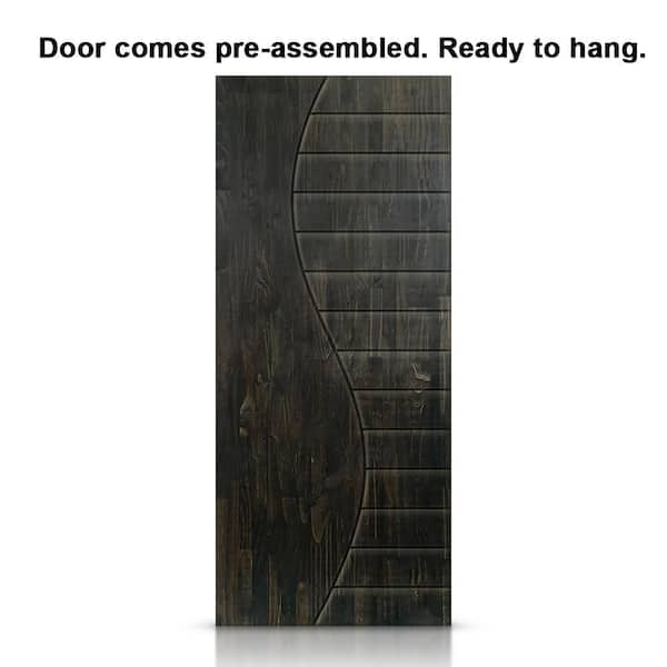 36 in. x 80 in. Charcoal Black Stained Pine Wood Modern Interior Sliding Barn Door with Hardware Kit