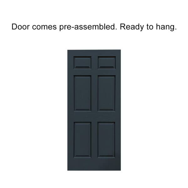36 in. x 80 in. Charcoal Gray Painted Composite MDF 6-Panel Interior Sliding Barn Door with Hardware Kit