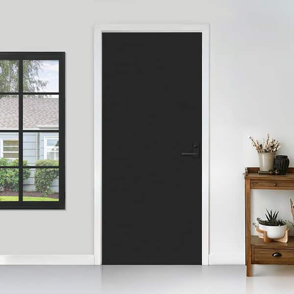 36 in. x 80 in. Left-Hand/Inswing Black Steel Prehung Front Door with Bore Hole