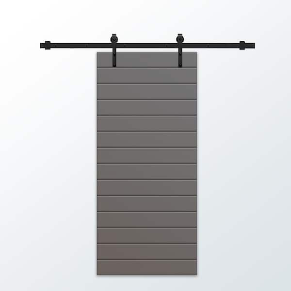 36 in. x 80 in. Light Gray Painted Composite MDF Paneled Interior Sliding Barn Door with Hardware Kit