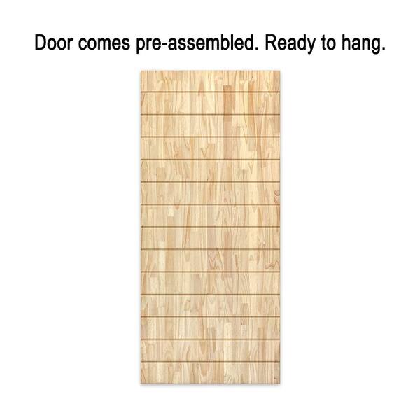 36 in. x 80 in. Natural Pine Wood Unfinished Interior Sliding Barn Door with Hardware Kit